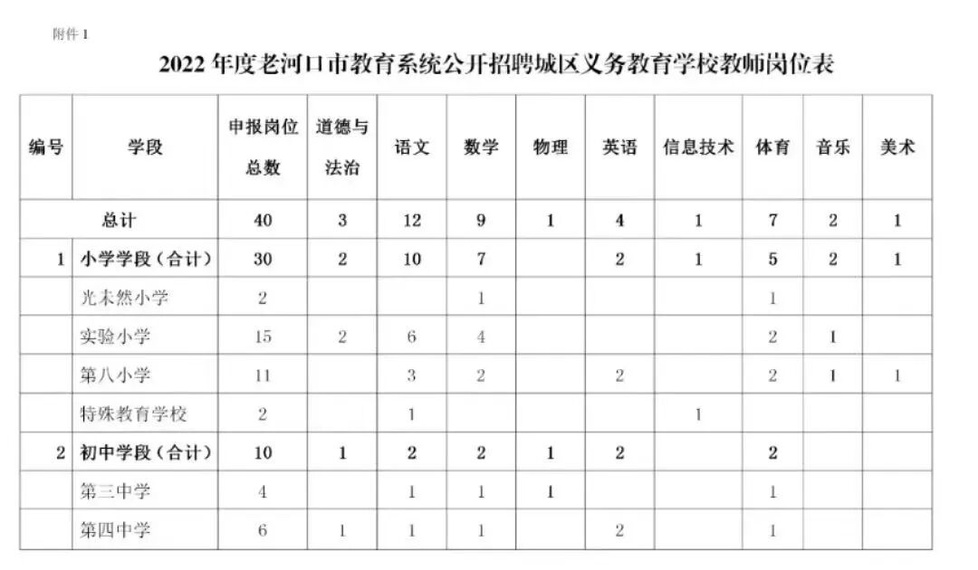 1.《2022年度老河口市城区义务教育学校公开招聘教师岗位表》